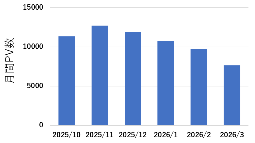 直近6ヶ月分の月間PV数を図にすると、このようになります。